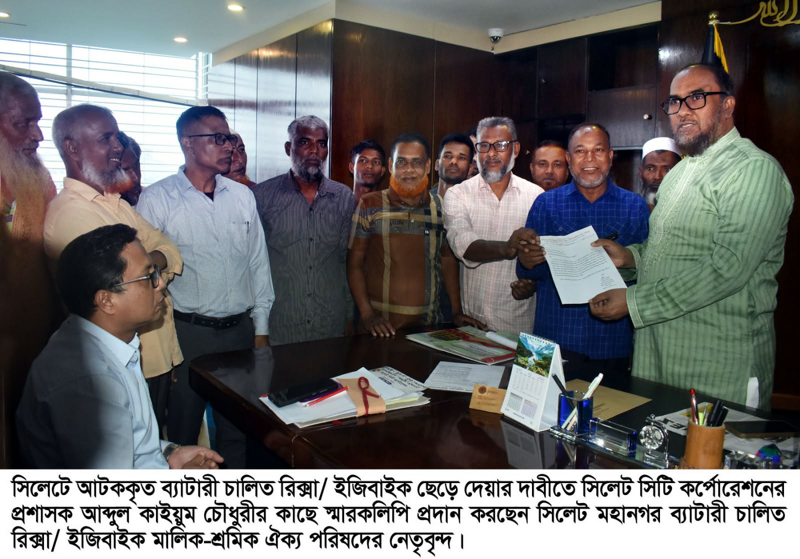 সিসিকের প্রশাসক বরাবরে ব্যাটারি চালিত রিক্সা মালিক শ্রমিক ঐক্য পরিষদের স্মারকলিপি পেশ।