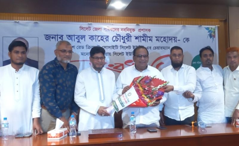 সিলেট রেড ক্রিসেন্টের নবনিযুক্ত চেয়ারম্যান আবুল কাহের শামীমকে সংবর্ধনা।