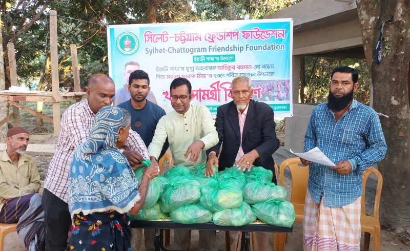 সিলেট-চট্টগ্রাম ফ্রেন্ডশিপ ফাউন্ডেশন, ইতালী শাখা’র উদ্যোগে অসহায় দরিদ্রদের মাঝে খাদ্য সামগ্রী বিতরণ।