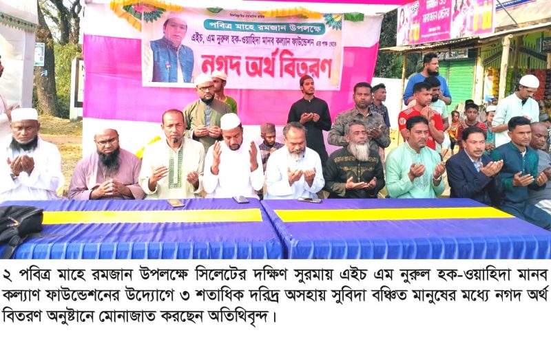 দরিদ্রদের মধ্যে এইচ এম নুরুল হক-ওয়াহিদা মানব কল্যাণ ফাউন্ডেশনের নগদ অর্থ বিতরণ।